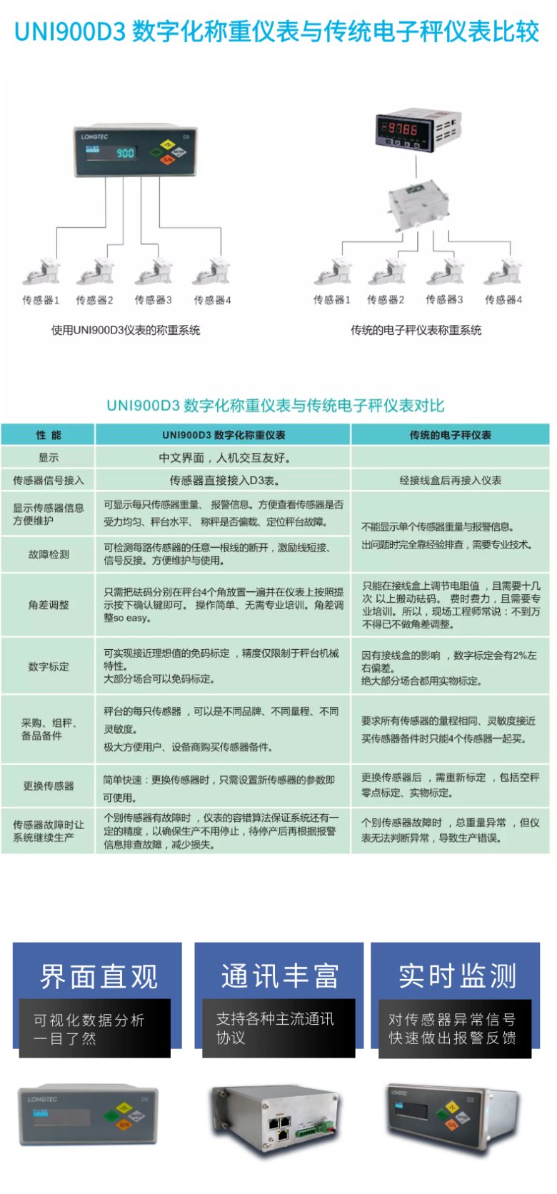 传统的电子秤采用模拟式称重传感器并联方式,将mV信号输入电子秤仪表,具有角差调整复杂,故障排查专业性高,校秤繁琐等诸多缺点,而采用数字称重传感器由于造价高,易损坏,互换性兼容性差等特点,不为广大用户所认可。如何才能解决上述问题?采用传统电子秤模拟传感器+数字采样技术,将数字称重系统与传统模拟电子秤的